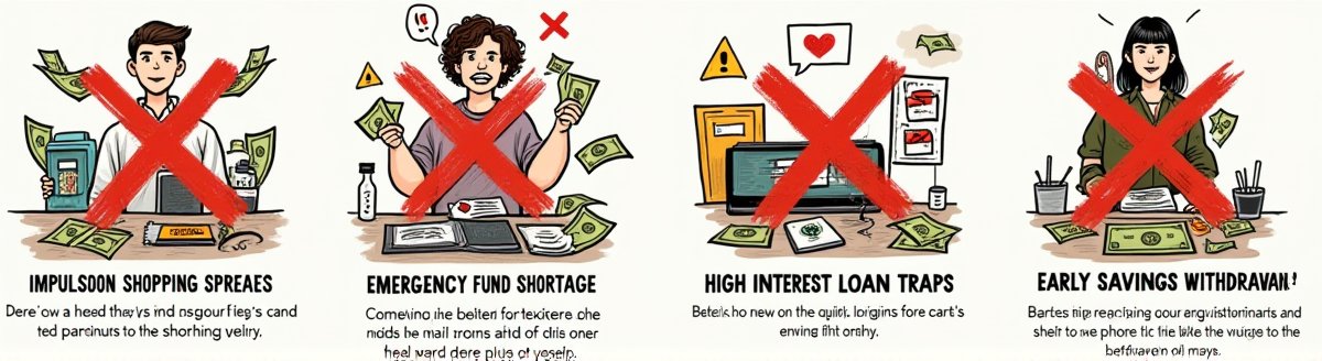 이런 실수를 피하려면 명확한 재무 목표를 설정하고, 매월 예산을 세워 지출을 관리하며, '선 저축 후 지출' 원칙을 지키는 것이 중요해요.